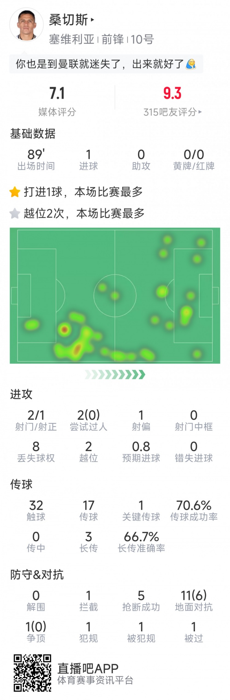36岁桑切斯靠近旧主数据:1粒进球,2射1正,5抢断,1次要道传球