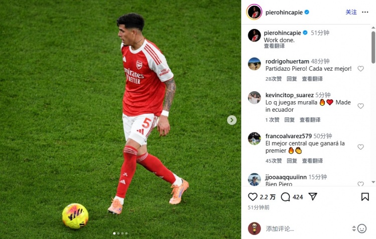 12月31日讯 今天凌晨,阿森纳在英超4-1大捷阿斯顿维拉,因卡皮耶赛后发文庆祝得手。