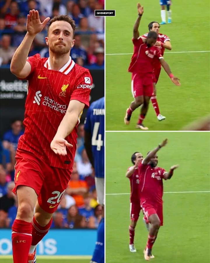 此前萨拉赫在英超首轮破门后曾经以相通的庆祝当作问候若塔↓