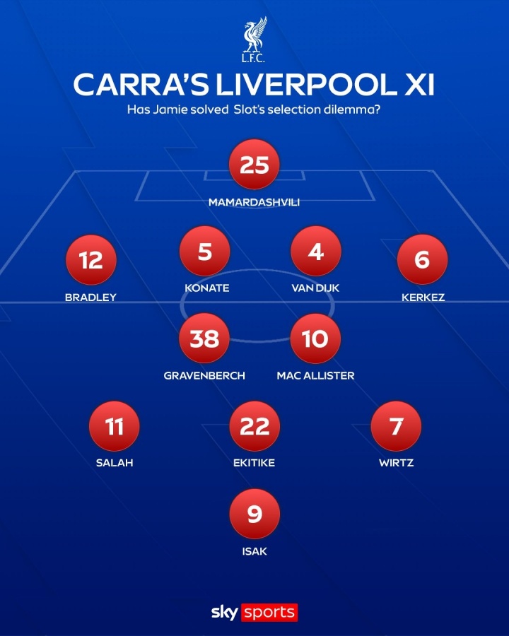 卡拉格摆利物浦首发:维尔茨左路换加克波,埃基蒂克伊萨克都登场