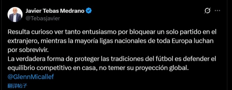 特巴斯写说念:“看到东说念主们如斯热衷于去顽固一场国外比赛,果然令东说念主感到意思意思,而与此同期,总计这个词欧洲的大多量国内联赛齐在为糊口而回击。”