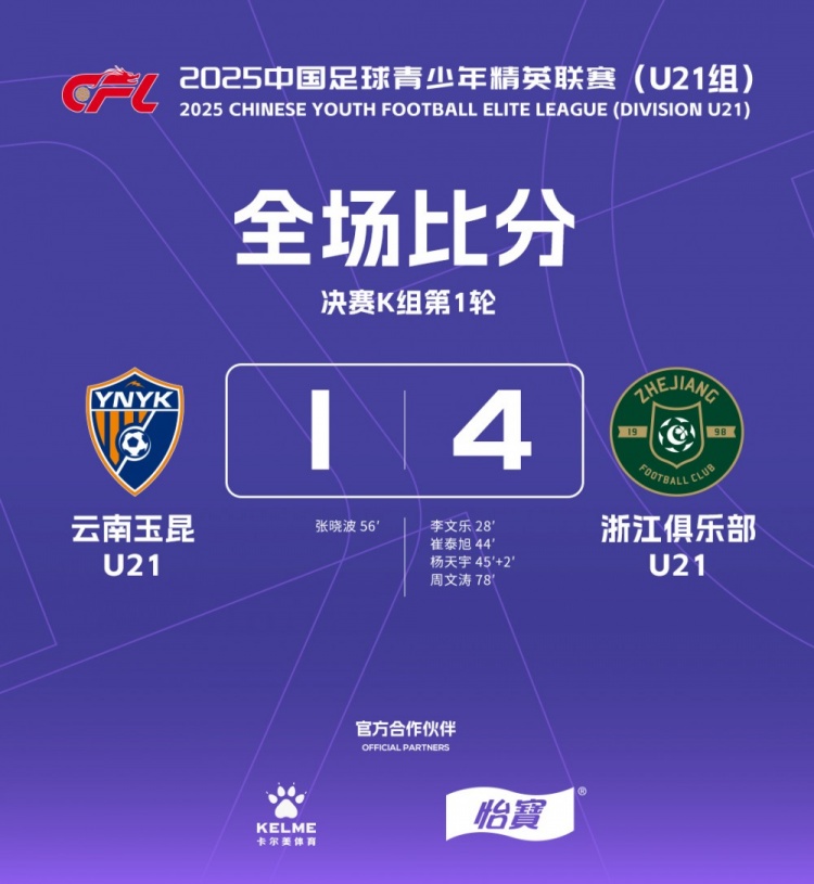 云南玉昆U21 1-4 浙江俱乐部U21