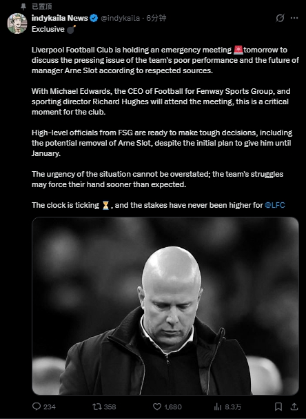“事态的紧迫性怎样强调齐不为过;球队抓续低迷的战绩,可能迫使俱乐部比预期更早接受行径。时辰在倒计时,对于利物浦来说,这是有史以来最危境的关头之一。”