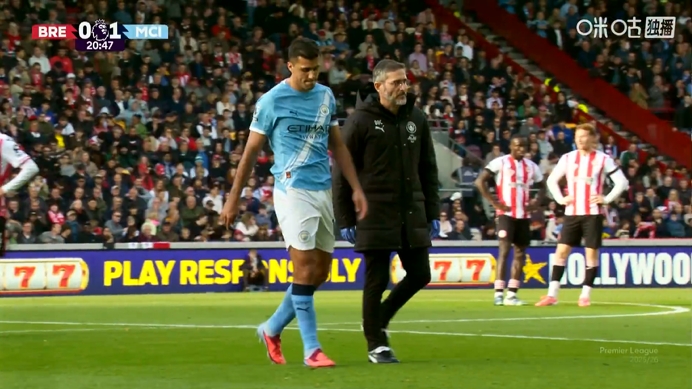10月05日讯 英超第7轮,曼城客战布伦特福德。20分钟,罗德里无法坚抓,被尼科·冈萨雷斯换下。