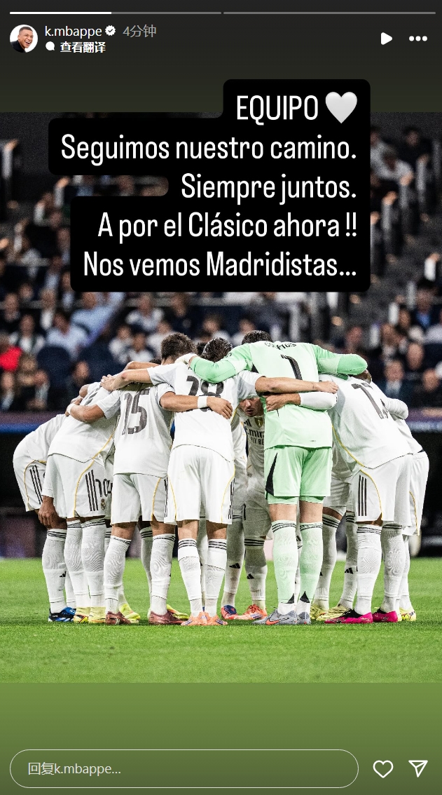 姆巴佩也在赛后晒出全队合照,配文写说念:“团队奏效,咱们沿着我方的轨说念前进,永恒互助一致。咱们西班牙国度德比络续加油,到本事再会!”
