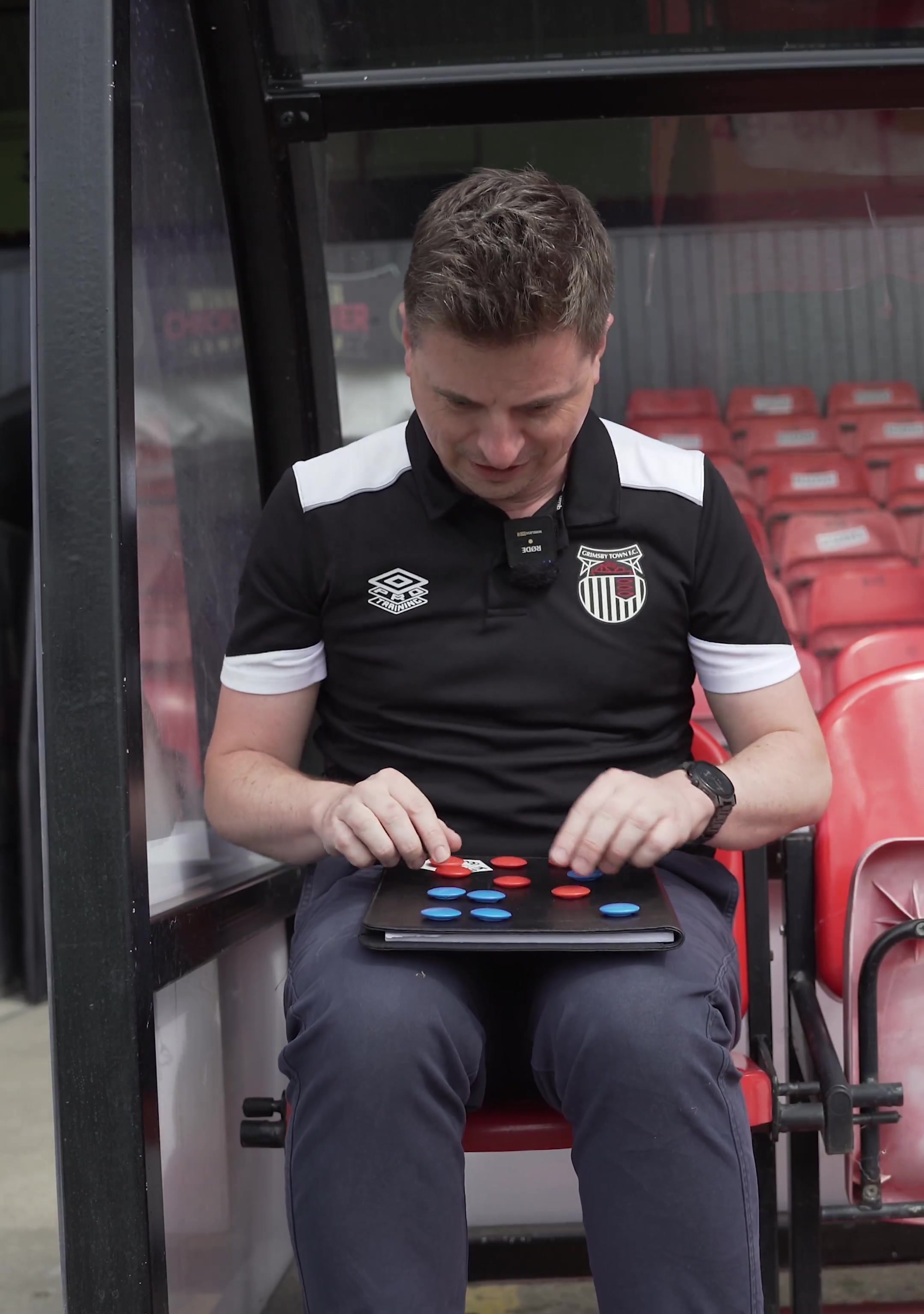 格林斯比官方社媒更新一段视频,球队教养一脸严肃地师法阿莫林摆计谋板,来公布下一轮比赛的首发声威。