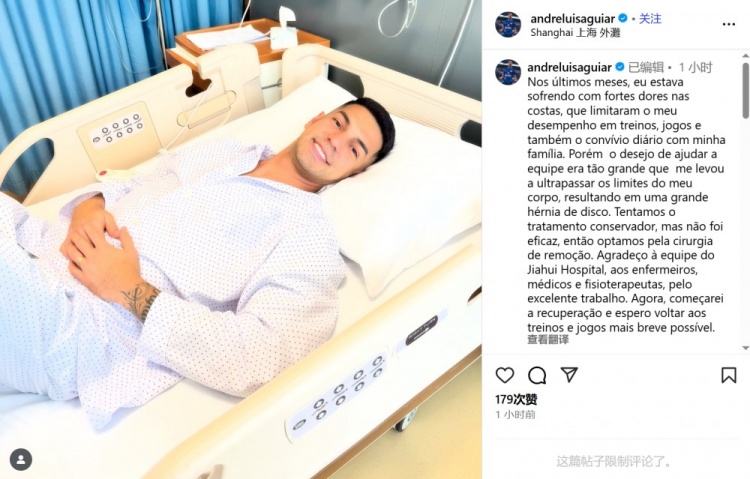 9月8日,申花官方音尘,球队前卫安德烈-路易斯腰椎间盘微创切除术,瞻望将伤缺六周傍边。今天,路易斯社媒晒照,他仍是见效接收手术。