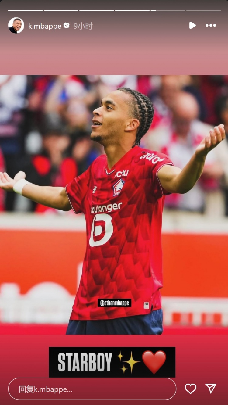 这亦然伊桑-姆巴佩工作糊口的处子球,姆巴佩社媒晒出伊桑-姆巴佩的像片,对弟弟暗意祝愿,配文:“新星!”