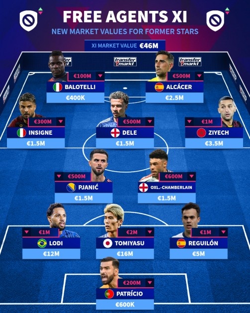 中场:皮亚尼奇150万欧、张伯伦150万欧、因西涅150万欧、阿里150万欧、都耶赫350万欧