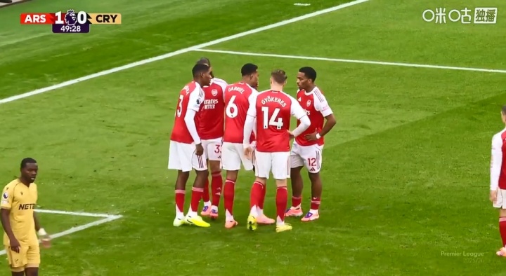 有套路!开定位球前枪手球员聚在沿途盘问计谋,随后加布头球中柱