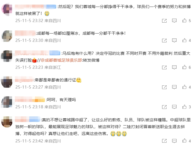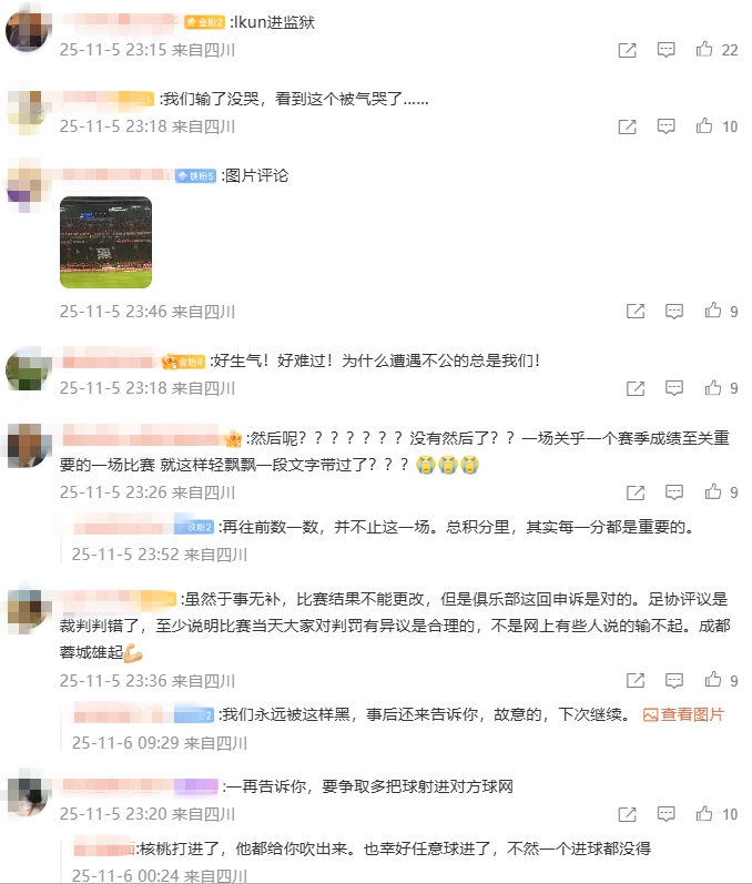 气炸!蓉城转足协评议微博,球迷动怒商量:黑机杼判,有天理吗