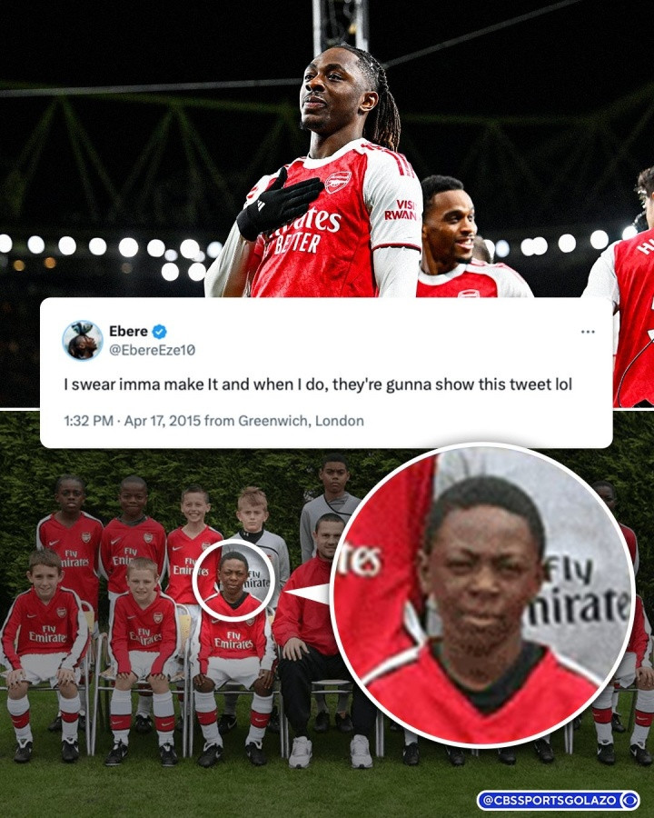 直播吧11月24日讯阿森纳4-1完胜热刺,笑傲北伦敦德比,埃泽成为了本场比赛的帽子戏法好汉。赛后,埃泽早年的一条社媒动态被各大媒体和球迷再度挖出。