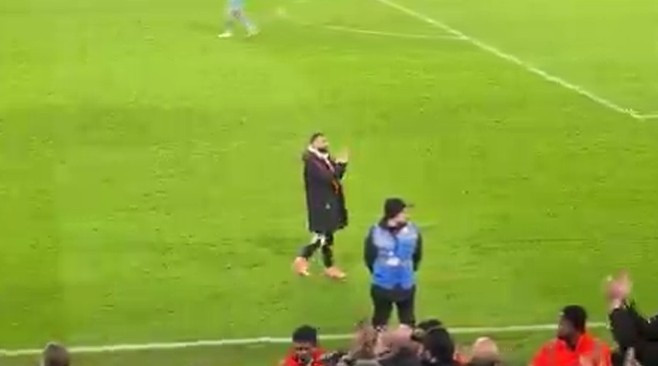 他也在赛后独自一东说念主长技术停留在场边,向球迷们饱读掌挥手问候。
