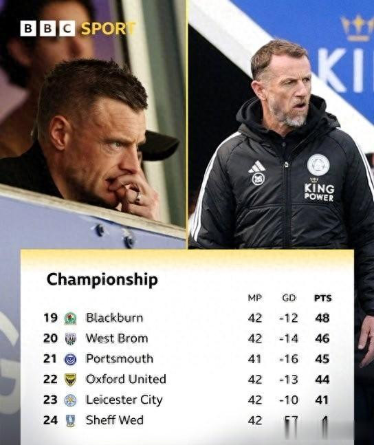 就在昨天,英冠第42轮的一场保级关键战中,莱斯特城坐镇王权运动活动 场 ,竟然0-1输给了无欲无求的斯旺西。这不仅仅是输掉了一场赛事 ,更是将这支昔日第一名 球队推向了深渊的边缘。目前他们深陷降级区,距离安全线足足有4分之差,而职业联赛 仅剩最后4轮。 更让人唏嘘的是,球队传奇、刚刚离队不久的瓦尔迪特意回到现场观战,看着老东家这般光景,39岁的硬汉在看台上眉头紧锁,甚至眼眶泛红,这一幕让无数球迷心碎。