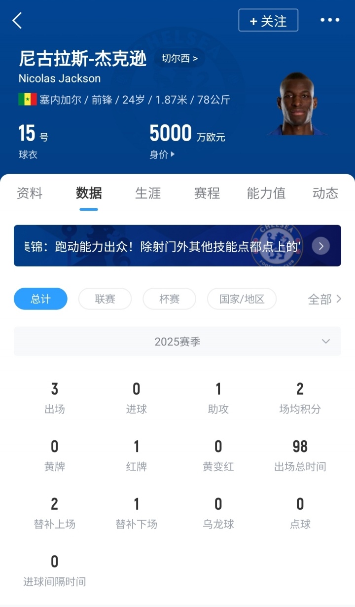 24岁的塞内加尔先锋杰克逊,上赛季代表切尔西出战34场比赛,孝顺13粒进球和5次助攻,咫尺杰克逊的德回身价为5000万欧元。