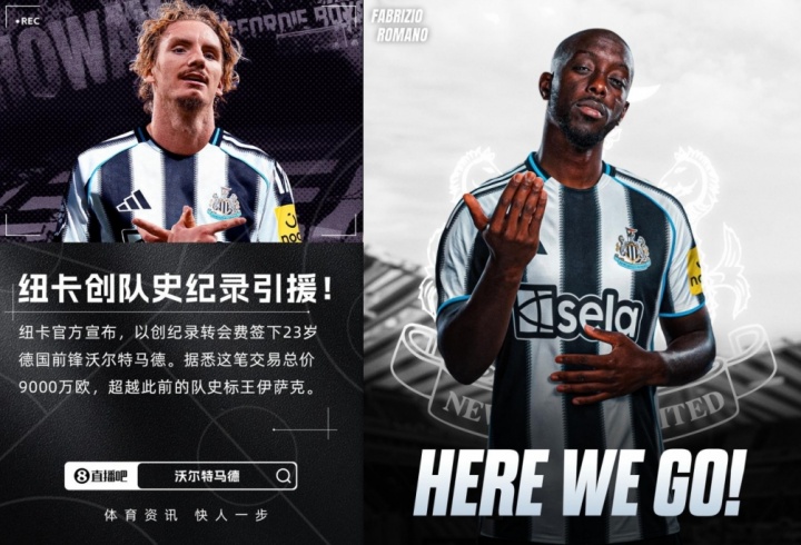 维萨加盟纽卡之后,加上此前喜鹊9000万欧(8500万+500万)官宣的沃尔特马德,他们一共浮滥约1.5亿欧买下2位新援,刚好就是离队的伊萨克转会费。
